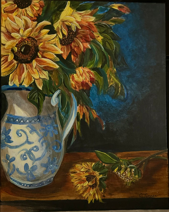 This is my go-to pitcher when I bring flowers in to enjoy. I love the sunflowers even when their heads get heavy and are in their last days. Enjoy the beauty that nature gives us from beginning to end.